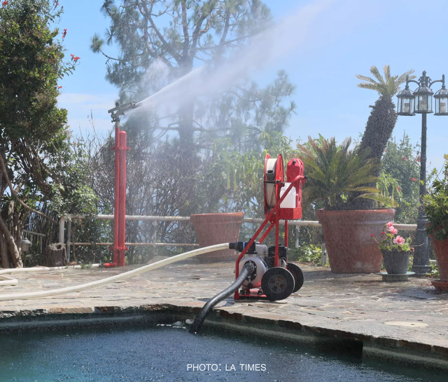 Swimming pool water can be deployed to suppress embers.